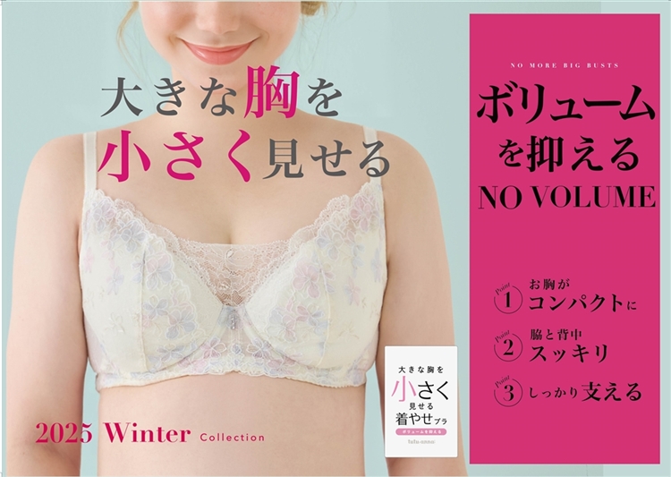 女性用靴下・インナーSPA(製造小売業)の株式会社チュチュアンナ(本社:大阪市中央区、代表取締役社長:上田 崇敦)は、2025年11月26日(水)より、新商品「大きな胸を小さく見せる着やせブラ」(商品名:ミスティブロッサムブラ)を全国50店舗および公式WEBサイトにて販売開始いたします。また、公式WEBサイトでは2025年11月13日(木)より予約販売を開始します。